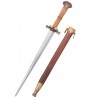 Diese schöne Replik basiert auf einem Original aus dem frühen 16. Jahrhundert (ca. 1510–1540), das heute zur Sammlung des Metropolitan Museum of Art in New York gehört. Die Klinge ist aus elastischem EN45-Federstahl gefertigt, weist einen rhomboiden Querschnitt auf und läuft spitz wie eine Nadel zu. Die Schneiden sind nicht geschärft, und die durchgehende Angel ist mit einer Messingmutter am Knauf verschraubt. Parierstange und Knauf sind kunstvoll aus patiniertem Messing gearbeitet, der Griff selbst ist aus Holz geschnitzt. Die Parierstange besitzt leicht nach außen gebogene kurze Parierarme und einen seitlichen B-förmigen Ring. Der sechseckige Knauf verbreitert sich nach oben zu einer flachen, verzierten Endkappe.
