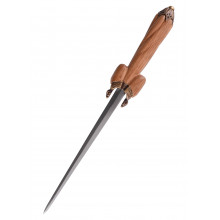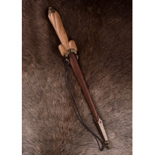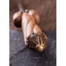 - Material: Klinge aus elastischem EN45-Stahl (kohlenstoffreicher, nicht rostfreier Stahl), Knauf und Parier aus patiniertem Messing, Griff aus Holz