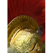 Dieses reich verzierte Modell mit floralen Motiven und einem Medusakopf vorne stellt Darstellungen dar, die wohl Angehörige des militärischen Adels zeigen. Der Medusakopf ist mittels einer verdeckten Schraube abnehmbar. Der Helm ist mit einem roten Längsbusch ausgestattet und somit geeignet für die Darstellung von Tribunen, Präfekten und Legaten.