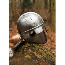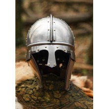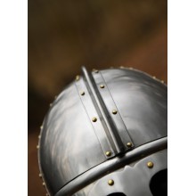 Der Helm ist ein Spangenhelm-Typ, charakteristisch für die Endphase des Imperiums, bestehend aus vier Segmenten, die mit Verschlüssen verbunden sind, sowie einer oberen Helmleiste. Er besitzt einen Nackenschutz und bewegliche Wangenklappen, die innen und an den Kanten mit Leder bezogen sind. Außerdem ist ein kurzer, vernieteter Nasenschutz vorhanden. Wie das Original ist dieser Helm handgefertigt und mit Messing vernietet.