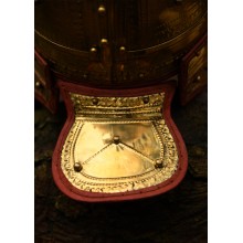 Der Helm entspricht eindeutig dem Spangenhelm-Typ, bestehend aus sechs Teilen, die später zu einer Helmkonstruktion zusammengenietet wurden. Die Wangenklappen sind leicht beweglich. Der Nackenschutz wird mit zwei Lederriemen und Schnallen befestigt, ist abnehmbar und verstellbar. Der Helm ist aus Stahl und Messing, handgefertigt und dank seiner Einlagen und des Innenleders angenehm zu tragen.