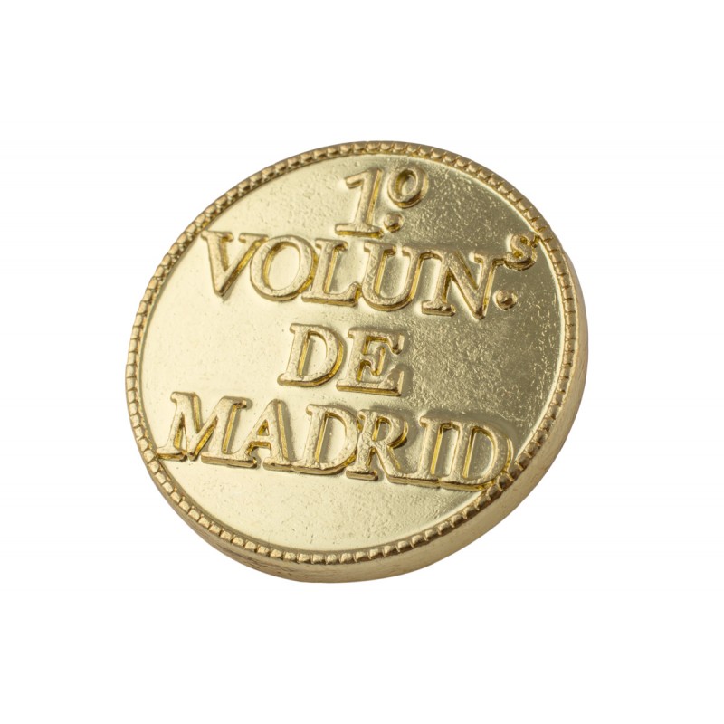 Dies ist der vorschriftsmäßige Knopf der Uniform des 1. Regiments der Freiwilligen von Madrid.
