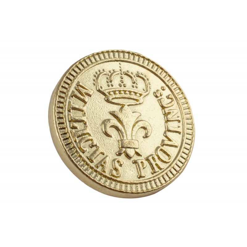 Dies ist der vorschriftsmäßige Knopf des Regiments der Provinzialmilizen. Es handelt sich um einen Knopf, der nach den napoleonischen Feldzügen eingeführt wurde und in der isabelinischen Epoche Verwendung fand.