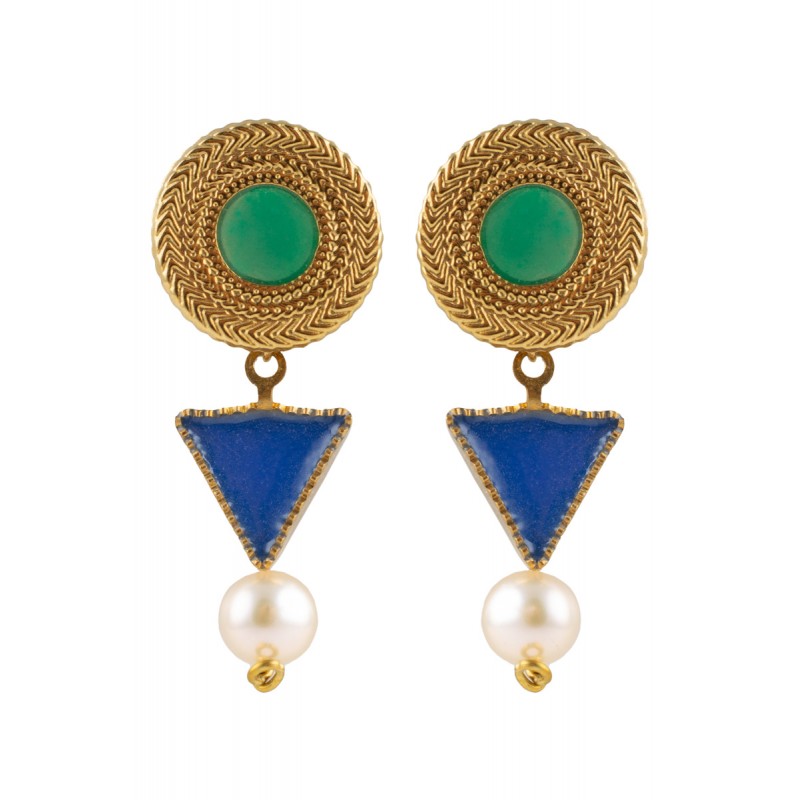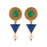 Römische Ohrringe mit einer emaillierten Scheibe, einer umgedrehten Pyramide und einer Perle.