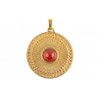 Replika eines wunderschönen spätgriechischen Anhängers. Originale wie dieses befinden sich in Museen und Auktionshäusern und sind bei Sammlern begehrt. Sie bestehen in der Regel aus einem scheibenförmigen Schmuckstück mit vielfältigen Verzierungen und einem zentralen Stein.