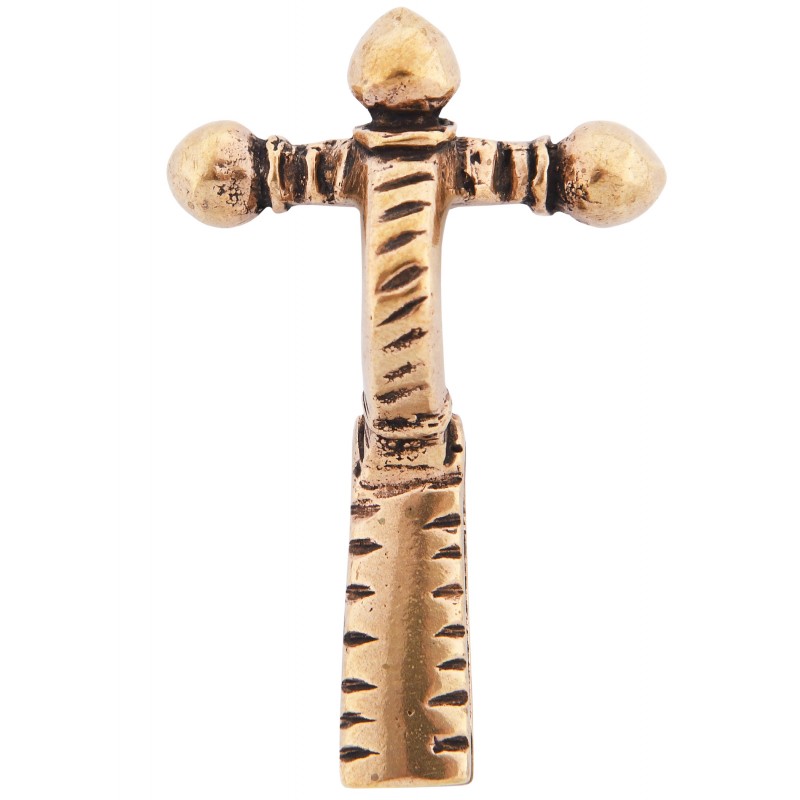 Dieser Fibulatyp in Form einer Armbrust wurde bei Soldaten und Offizieren der spätrömischen Armee sehr beliebt. Die Replik basiert auf einem Fund aus der Nähe von Aleksandrovac, Zentralserbien, und das Original wird derzeit im Museum von Župa in derselben Stadt ausgestellt (siehe Bild unten).