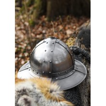 Nachbildung eines mittelalterlichen Helms, der ab dem 11. Jahrhundert unter Fußsoldaten und Armbrustschützen verbreitet war.