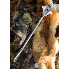 Keulen enthielten oft spitze oder scharfe Elemente. Diese gotische Keule verfügt über mehrere scharfe Klingen, um den Schaden an der Rüstung des Gegners zu erhöhen. Die Keule ist vollständig aus leicht geöltem Stahl gefertigt und besitzt sechs spitze Blätter. Unsere historische Nachbildung ist ausschließlich für Rekonstruktionszwecke oder als Dekoration gedacht.