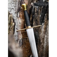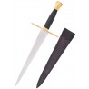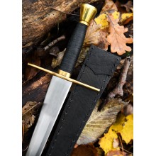 Dies ist ein hochwertiger Dolch, ein exklusives Stück nur für die anspruchsvollsten Liebhaber. Sein starker, konischer Profil und die feine Spitze sind so gestaltet, dass sie die historische Form replizieren, die dazu diente, die Gelenke in Plattenrüstungen jener Zeit zu durchdringen. Der Dolch wird mit einer feinen Lederscheide geliefert, die eine Halterung für den Gürtel enthält.