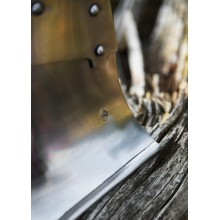 Dieser Bartschutz ist handgefertigt aus 1,6 mm starkem Stahl und im Mundbereich durch die Hinzufügung einer zusätzlichen Platte verstärkt. Die Falten im Stahl an Mund und Brust sind so gestaltet, dass sie das Verletzungsrisiko minimieren. Der Lederriemen ermöglicht die Anpassung an die individuelle Größe.