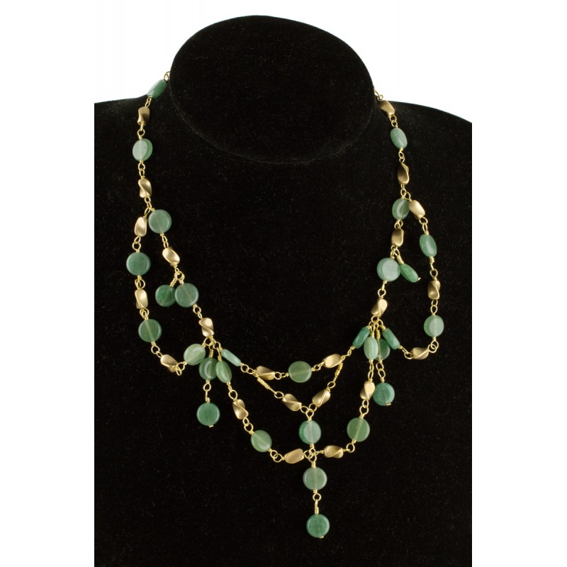 Prächtige Halskette im byzantinischen Stil, gefertigt aus Messing, Jade, Aventurin und Süßwasserperlen. Basierend auf einem Original, das im Altes Museum in Berlin ausgestellt ist.