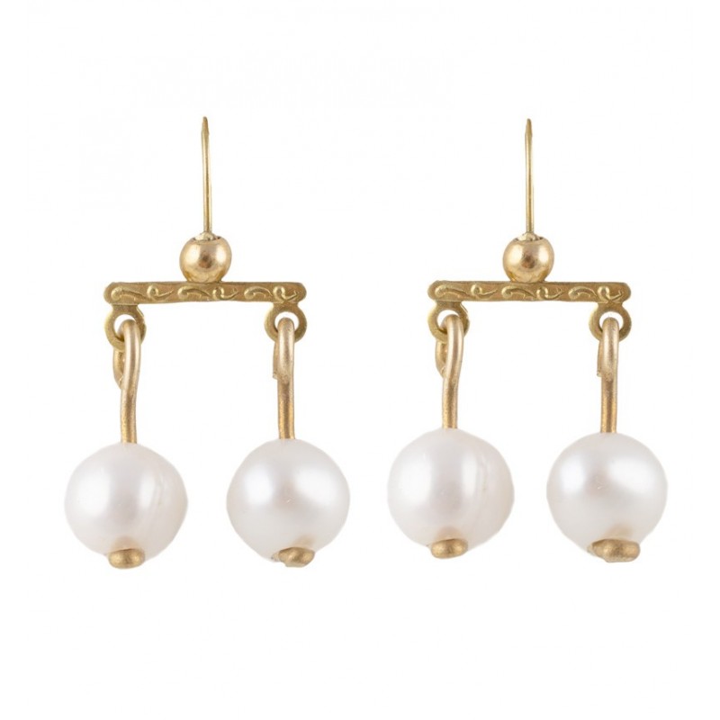 Ohrringe aus Messing und Süßwasserperlen im klassischen Design, vom Typ Crotalia. Perfekt für römische Damen, hochrangige Persönlichkeiten und Matronen. Geeignet für die Nachstellung des 1. bis 3. Jahrhunderts n. Chr., da Beweise für diese Art von Schmuck in der Nekropole von Al Fayum gefunden wurden. Wahrscheinlich wurden Ohrringe dieses Typs bereits seit der mittleren Republik verwendet.