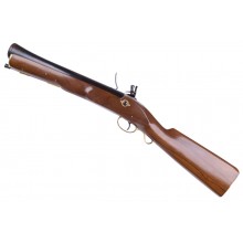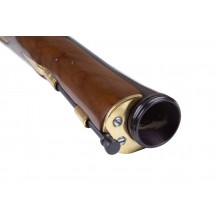 Dies ist ein sehr handlicher Trabuco mit brüniertem Stahl-Lauf und Schloss. Der schwarz-bläuliche Ton dieser Teile verleiht ihm ein besonders edles Aussehen. Der Ladestock ist ebenfalls aus brüniertem Stahl gefertigt und verfügt über einen Wischkopf.