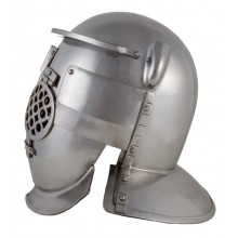Der Helm ist an den Helm der Legionäre angelehnt, verfügt jedoch über einen Gesichtsschutz, der mit Scharnieren geöffnet werden kann. Die Sehschlitze sind größer als beim Helm des Secutors, aber noch immer stark eingeschränkt. Er besitzt keine Vorsprünge oder Kämme, an denen sich das Netz des Retiarius verfangen könnte.