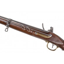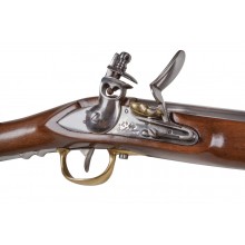 Hier haben wir eine ausgezeichnete Replik der am weitesten verbreiteten französischen Vorderlader-Karabiner der Kavallerie aus dem späten 18. Jahrhundert, entwickelt als Variante des Charleville-Infanteriemosquets. Seit der Einführung des Standard-Infanteriemosquets 1763 wurden kürzere und leichtere Karabiner-Versionen mit verschiedenen zusätzlichen Modifikationen entwickelt, die zwei Hauptzwecken dienten: einen kleineren Mechanismus zu bieten und eine spezielle seitliche Halterung für den Transport am Sattel mitzuführen. Diese Karabiner und die längere Version als Infanteriemosquet waren bis in die 1820er Jahre in der französischen Armee üblich.