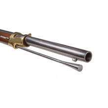 Diese Karabiner-Replik ist hervorragend geeignet für die historische Nachstellung der französischen Dragoner, Husaren oder Jäger zu Pferd, die während des Spanischen Unabhängigkeitskriegs auf der Iberischen Halbinsel im Einsatz waren. Es handelt sich um eine Ann-IX-Version mit einer technischen Anpassung: Der Rammkanal verläuft als Standardkanal anstatt des originalen vorgeschriebenen Kanals, der die gesamte Waffe durchzog, an den Schrauben des Schlosses vorbei bis zum Schaft. Daher ragt die Ladestange etwas weiter heraus als bei den Originalen, was es dem Nachsteller oder Sammler ermöglicht, sie zu kürzen oder den Kanal durch Ausbau der Replik selbst anzupassen.