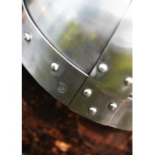 Dieses Nasal-Modell folgt dem Muster der Spangenhelme der Spätantike. Beide Kuppelhälften sind miteinander verschweißt und vier Stahlbänder (Spangen) sind am Helm genieteten, um ihn zu verstärken. Diese Herstellungsweise bietet große Robustheit und Schutz. Der verwendete Stahl hat eine Stärke von ca. 2 mm. Das Nasal ist relativ lang, an der Kuppel angenietet und aus handgeschmiedetem Stahl von etwa 3 mm Stärke gefertigt, sodass es auch stärksten Schlägen standhält.