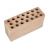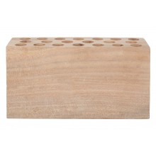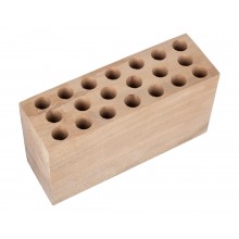 Sie verfügt über 20 Plätze mit ausreichender Tiefe, damit eine Patrone mit der Oberseite herausragt und leicht entnommen werden kann. Hergestellt aus einem massiven Holzblock mit farblosem Finish.