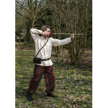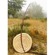 Dieser Langbogen ist ein wahres Schmuckstück für anspruchsvolle Mittelalter-Reenactors. Er wird aus mehreren Lagen Eschenholz und Glasfaserlaminat gefertigt, was ihm zusätzliche Stabilität und Langlebigkeit verleiht. Voll funktionsfähig und mit Dacron-Sehne geliefert.