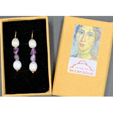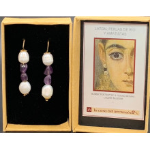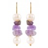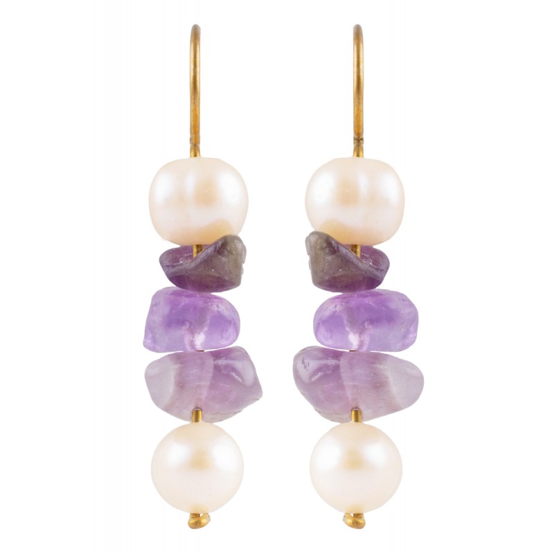 Ohrring inspiriert von Al Fayum, hergestellt aus Messing, Perlen und Halbedelsteinen wie Amethyst, Onyx oder Jade.