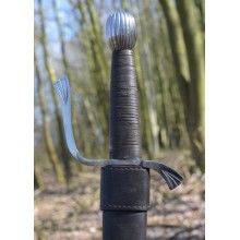 Mit diesem Produkt bietet die Schmiede ULFBERTH® eine funktionale Replik eines Falchions, schlagkräftig und für die Rekonstruktion von Kämpfen geeignet, dank der abgerundeten Spitze für Sicherheit, und das alles zu einem hervorragenden Preis-Leistungs-Verhältnis. Die handgeschmiedete Klinge aus elastischem Stahl 55Si7 (EN45) wurde ölgehärtet und auf eine Rockwell-Härte von ca. 48–50 HRC gebracht. Selbstverständlich ist die Klinge durchgehend bis zum Knauf. Der Holzgriff ist mit Leder umwickelt, und der elegante Handschutz ist handgeschmiedet aus weichem Stahl. Die Klinge ist stumpf und die Spitze aus Sicherheitsgründen abgerundet.