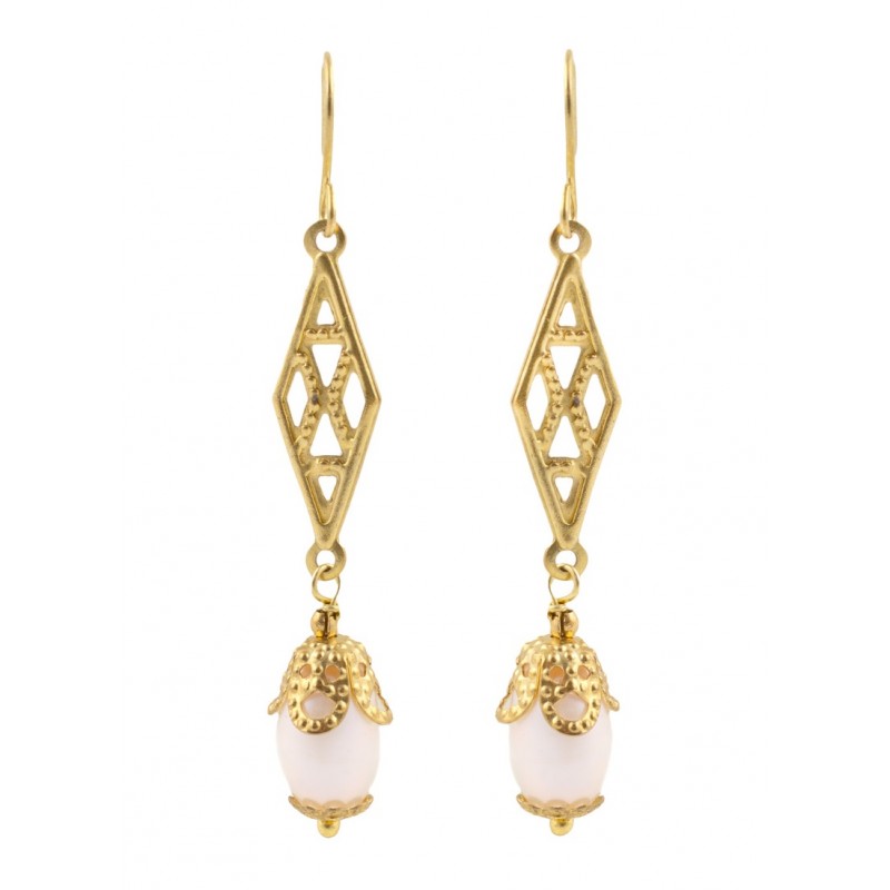 Wunderschöne Ohrringe im Barockstil, gefertigt aus Messing und Flussperlen, inspiriert von denen, die Lucia Anguissola, die Schwester der berühmten Malerin, trug.
