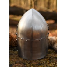 Diese Variante weist ein stärker konisches Profil auf als frühere tonnenförmige Modelle. Es handelt sich um einen geschlossenen Helm mit Visier, der sowohl von Rittern als auch von schwerer Infanterie in den meisten europäischen Heeren getragen wurde. Darunter wurde meist eine Hirnhaube oder ein geheimer Helm getragen.