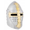 Rekonstruktion eines Typs von Großhelm, der ab dem 13. Jahrhundert von aragonesischen Rittern verwendet wurde. Es gibt Belege für die Verwendung dieses Helmtyps während der aragonesischen Eroberung des Königreichs Mallorca im Jahr 1231, möglicherweise eingeführt aus anderen europäischen Reichen (David Nicolle, Medieval Warfare Sourcebook, Bd. I). Die christlichen Heere übernahmen diesen Helmtyp relativ früh, da er trotz eingeschränkter Sicht und erschwerter Atmung einen guten Schutz für den Kopf bot. Er gilt als Vorläufer der weiterentwickelten Helme (Celadas), die gegen Ende des Mittelalters aufkamen.