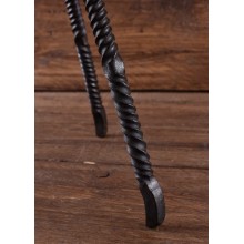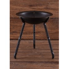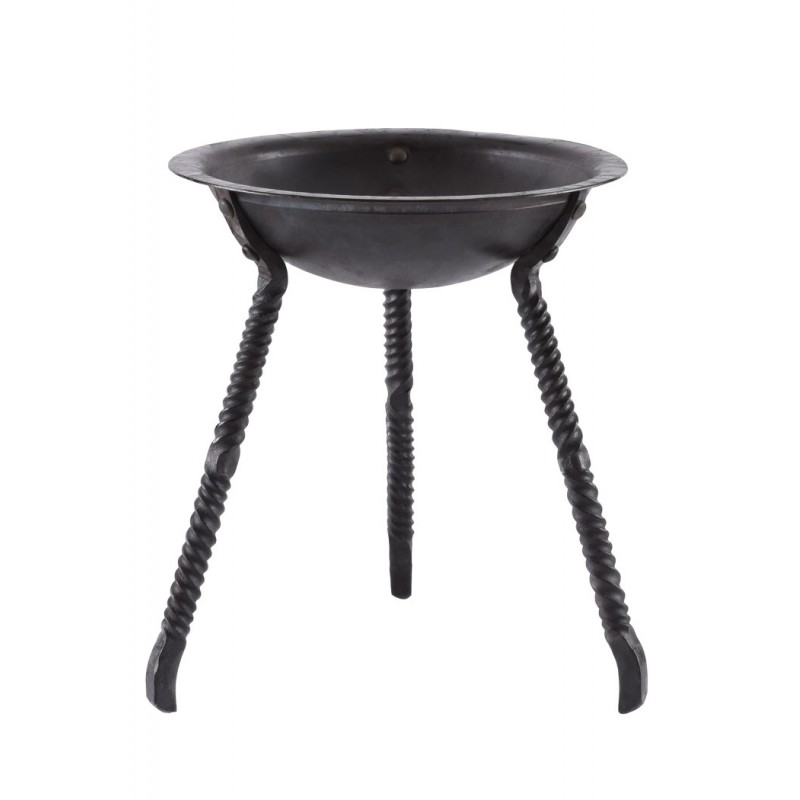Die drei Beine aus Stahl sind handgeschmiedet und mit einer dekorativen Spiralform versehen. Sie sind mittels Nieten mit der Schale verbunden.