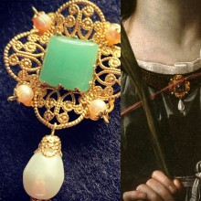 Pendientes barrocos inspirados en el retrato de Lucia Anguissola, hermana de la autora, Sofonisba Anguissola.