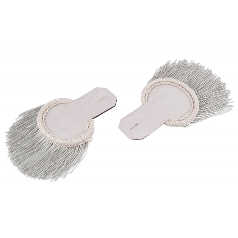 Estas son unas charreteras con flecos en ambos hombros. Se ofrecen en dorado para oficial y plateado para suboficial.