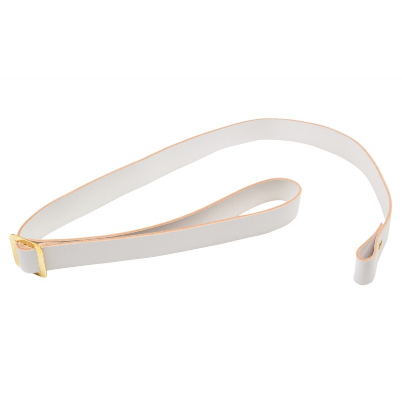 Esta es una réplica de la correa aplicables a cualquier fusil francés de modelo Charleville. Como las reglamentarias, está fabricada en cuero de vacuno teñido de blanco, con una hebilla de latón para el ajuste de la holgura.