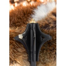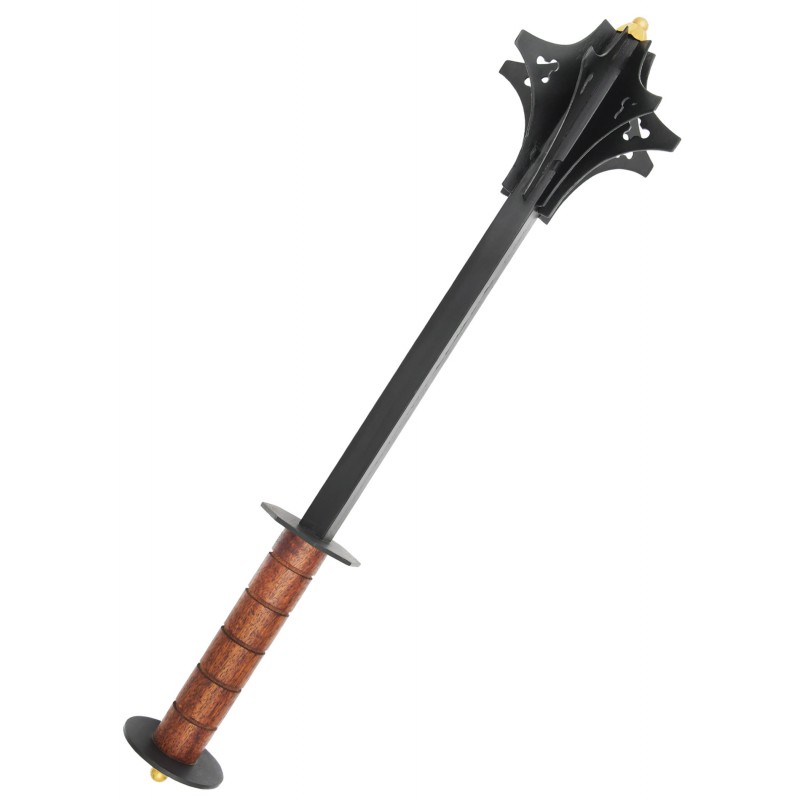 Las mazas solían incorporar elementos punzantes o cortantes. Esta maza, de tipo gótico, incorpora una serie de cuchillas afiladas con la que aumentar el daño en las corazas del enemigo. La maza está totalmente hecha de acero con seis hojas puntiagudas. Nuestra réplica histórica se hace para el propósito de la recreación o decoración exclusivamente.
