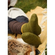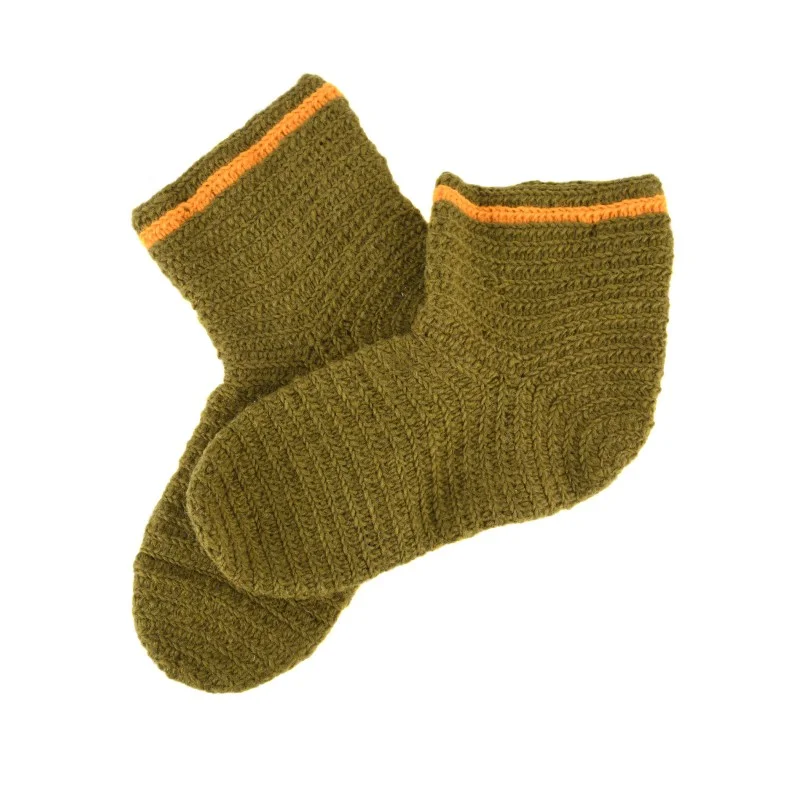 Estos preciosos calcetines gruesos de lana, hechos a mano, están tejidos a ganchillo con 100 % lana de oveja y son ideales para los fríos días de invierno. El patrón de ganchillo se basa en la técnica tradicional de encuadernado con aguja utilizada a principios de la Edad Media. El ganchillo crea una estructura densa pero flexible que garantiza que los calcetines te mantendrán abrigado en todo momento. La lana de oveja también proporciona un excelente aislamiento térmico, manteniendo tus pies abrigados en temperaturas más frías. Estos calcetines no solo son ideales para el aire libre, sino también para mantenerte abrigado y cómodo en casa.
