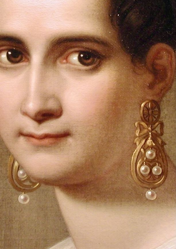 Pendientes representados en retrato de mujer por Ludwig Doell.