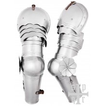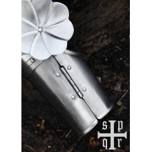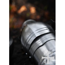 Esta réplica de armadura articulada es una reconstrucción del Renacimiento, tal como se usaba en el siglo XVI. Está fabricada en acero de 1,6 mm de calibre y ennegrecida en su interior para una mayor resistencia a la corrosión. Está diseñada para proteger los antebrazos, codos, brazos y hombros.