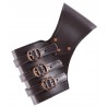 Este tahalí de cuero se adapta muy bien al cualquier cinturón. Mediante las tres correas remachadas con hebillas de latón es ajustable en tamaño. Las vainas de cualquier tamaño se pueden unir fácilmente o incluso las espadas desnudas.