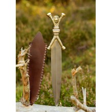 En esta réplica se reproduce una daga, con decoración antropomorfa estilizada en la empuñadura. Los soldados romanos utilizarían este tipo de dagas, arrebatadas al enemigo, como complementos de su panoplia republicana. La daga está equipada con empuñadura de latón macizo, una hoja de acero y una simple pero resistente vaina de cuero.
