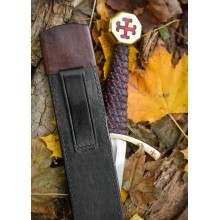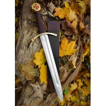 La hojadeacero elástico es de una sola pieza hasta el pomo y presenta una anchura superior al de otros modelos, lo que la hace también algo más pesada. La empuñadura es de madera y se presenta envuelta en cuero tejido.La dagavienecon una vaina de cuero en dos colores, muy elegante.
