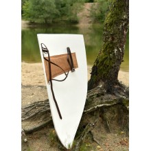 La forma del escudo permitía una defensa casi completa del cuerpo del infante o caballero dada su longitud. Se vende en blanco para que seas tú quien lo decore con tu propio escudo de armas o el de tu grupo de recreación. Además dispone de unas correas de cuero para ajustar mejor el escudo a tu brazo.