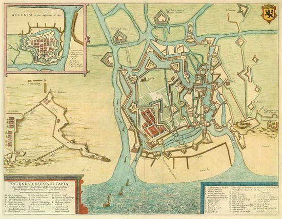Planimetría de Ostende durante los cuatro años de asedio. Fuente: Wikipedia