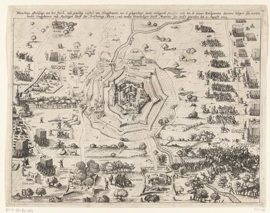 Socorro de las tropas de Mauricio de Nassau a los amotinados del castillo de Hoogstraeten. Autor anónimo.