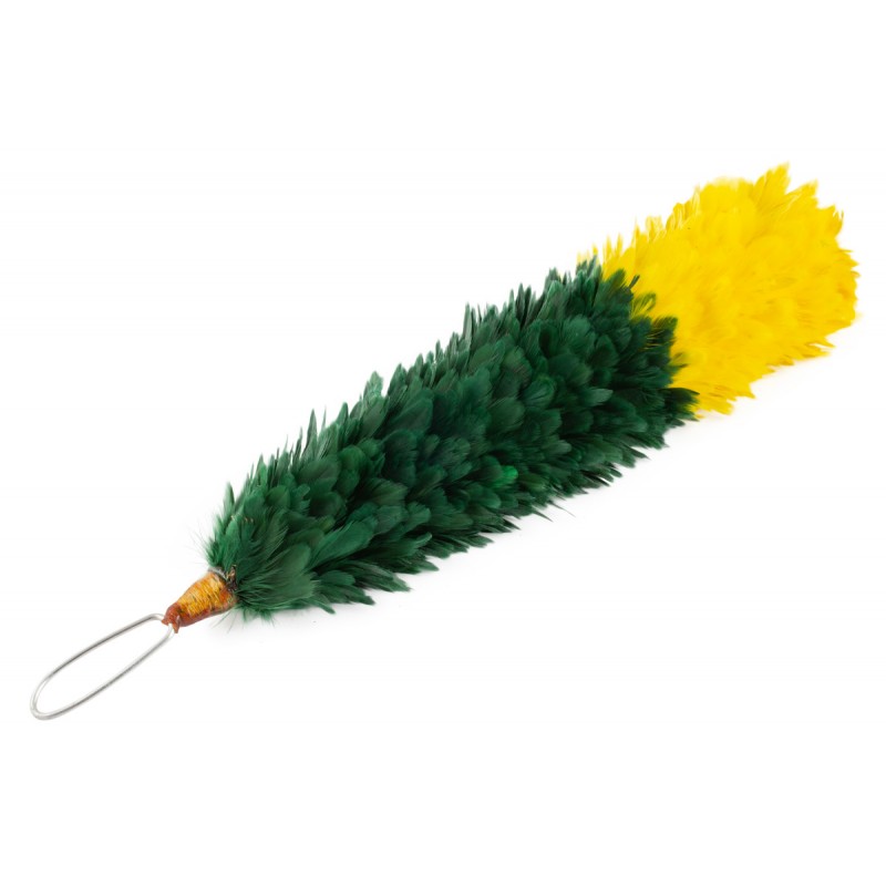Ce plumeau est composé de plumes naturelles teintes et montées sur un fil inférieur en boucle, tout comme les originaux historiques. Il est vert espoir avec l'extrémité supérieure en jaune, utilisé principalement par certains régiments d'infanterie légère comme les voltigeurs.