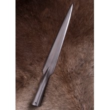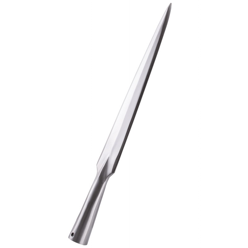 Veuillez noter que cette pointe de lance est principalement destinée à être un objet de collection, décoratif ou de reconstitution historique et ne convient pas au combat réel ou à l'escrime historique. La pointe de la lame n'est pas arrondie et les bords ne sont pas affûtés, mais légèrement meulés (avec le bon équipement et les connaissances et compétences nécessaires, ils peuvent être affûtés si nécessaire).