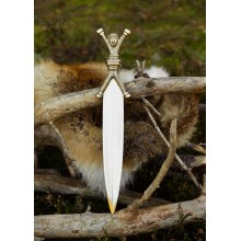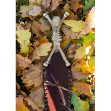 Dans cette réplique, un poignard est reproduit, avec une décoration anthropomorphe stylisée sur la poignée. Les soldats romains utiliseraient ce type de poignards, pris à l'ennemi, comme complément à leur panoplie républicaine. Le poignard est équipé d'une poignée en laiton massif, d'une lame en acier et d'un étui en cuir simple mais solide.