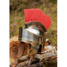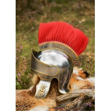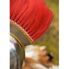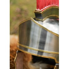 Ce modèle est plus basique que d'autres, car il est en acier, avec de simples décorations en laiton. Il incorpore un panache longitudinal en rouge, il est donc adapté pour recréer les préfets de camp et les tribunes équestres (angusticlavii).