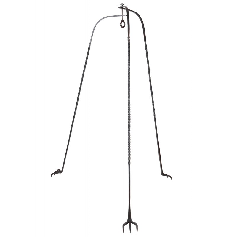 Trépied en acier forgé pour reconstitution du château ou camp médiéval.
