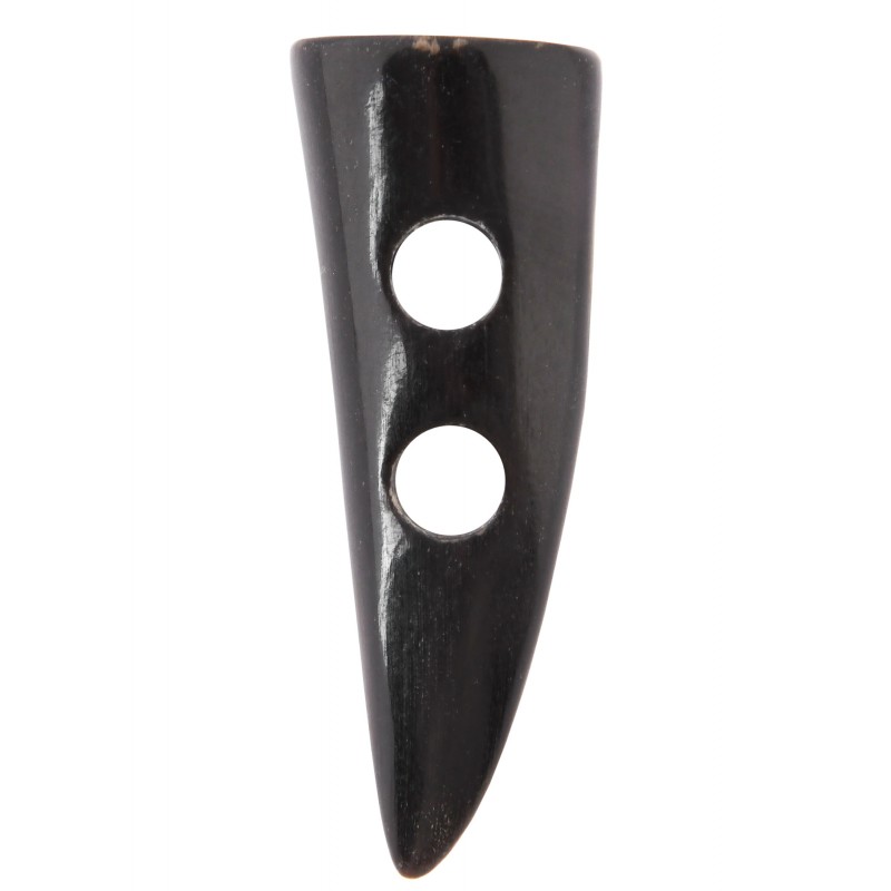 Ces petites pièces sont fabriquées à la main à partir de corne et soigneusement polies. Grâce à ses deux trous pré-percés, il peut être facilement fixé avec une sangle en cuir ou en tissu. Il est particulièrement adapté comme fermeture authentique pour les vêtements ou les sacs. Chacun mesure 50 mm de longueur et est perforé de deux trous traversants, permettant une grande polyvalence.