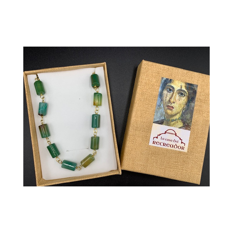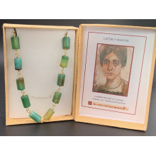 Collier composé de perles de jade naturel teintes et de laiton, serti à la manière traditionnelle des bijoux romains, interprété à partir de celui porté par la femme dans le portrait d'Al Fayum. Ces beaux dessins nous permettent d'observer les bijoux qui étaient portés à l'époque, donc cette belle réplique est parfaite pour les femmes et les femmes de haut rang, ainsi que pour un usage contemporain en raison de son design délicat.