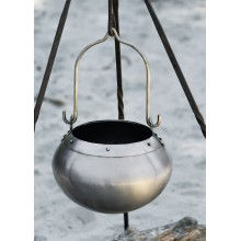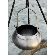Il s'agit d'un chaudron fabriqué par forgeage et avec des pièces rivetées. La finition en acier est polie et d'aspect réaliste. Ce chaudron convient à la reconstitution de diverses périodes historiques car il a été utilisé de manière similaire et fabriqué pendant de nombreux siècles depuis le premier Moyen Âge.